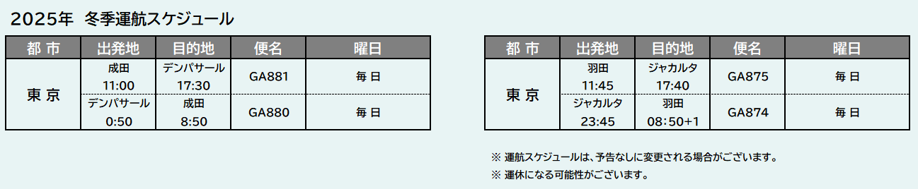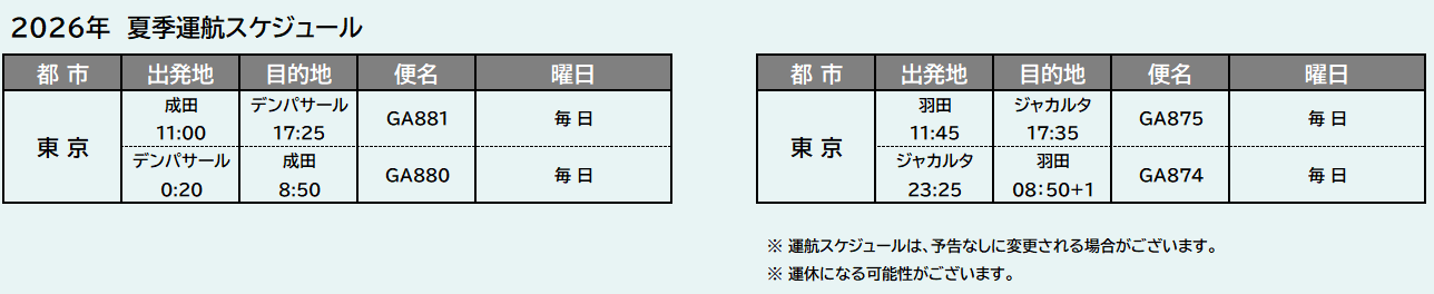 ◆格安なガルーダ・インドネシア航空◆ 片道:33,000円~ 往復:52,000円~ ※正規割引運賃 羽田ージャカルタ、成田ーデンパサールの直行運航がございます。 その他日本各空港発着もお乗り継ぎでスケジュールを組めますのでお問合せください。 また団体航空券(10名様以上)や現地インドネシアからの航空券についても特別料金をご提示させていただきますので是非ガルーダ・インドネシア航空をご活用ください。